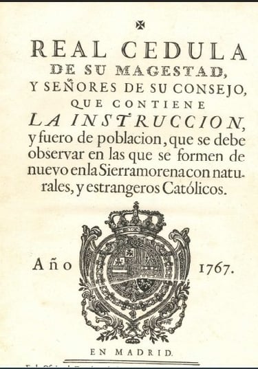 En 1767, el rey Carlos III puso en marcha un ambicioso proyecto, cuyo principal objetivo era poblar toda aquella zona con colonos provenientes de otros puntos geográficos de Europa, con el fin de dar a la región la oportunidad de convertirse en un puntal económico, social y cultural, según los ideales de la Ilustración, que se estaban imponiendo en gran parte del viejo continente.